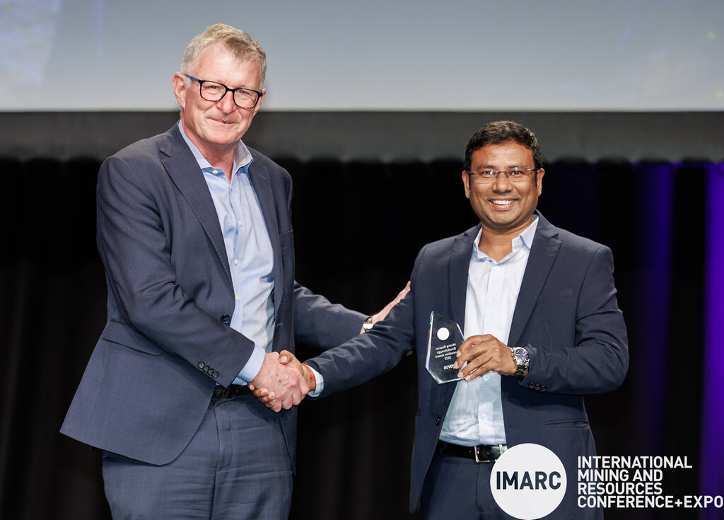 Sanjeev Kumar, Head of Business receives the Mining Beacon Breakthrough Innovation Award at the 2025 IMARC event.