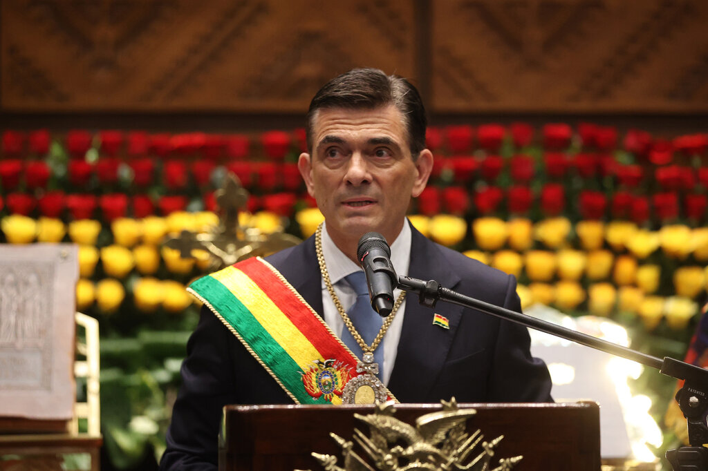 Bolivian President Rodrigo Paz took office on 8 November 2025. Photo by Luis Gandarillas/Pool/Bloomberg via Getty Images.
